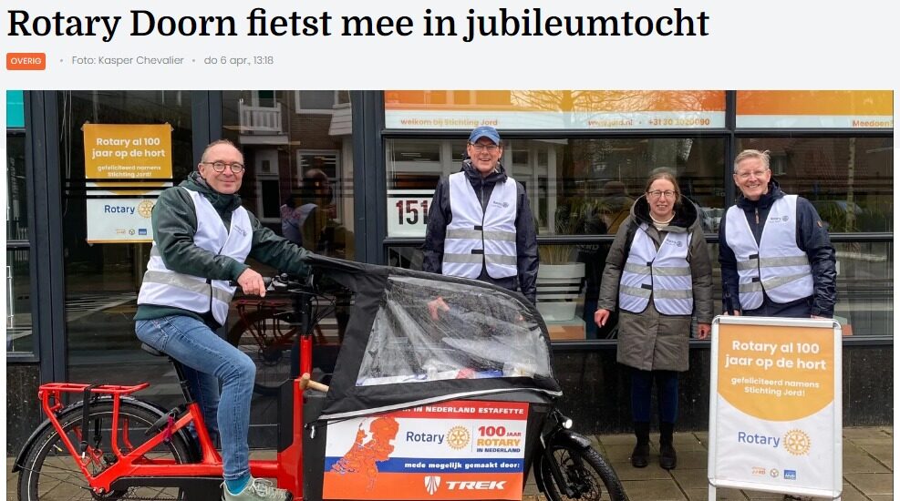 Dit jaar viert de Rotary het 100-jarig bestaan. In januari 1923 werd in Amsterdam de eerste Rotaryclub opgericht en Utrecht volgde snel. Inmiddels zijn er vijfhonderd clubs, waaronder die in Doorn. Om het jubileum te vieren, wordt een 5000 kilometer lange emissieloze estafette gereden met een bakfiets en ‘gouden schep’ langs alle clublocaties. Elke club […]