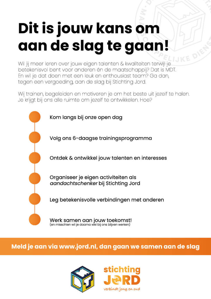 We zijn in afwachting van goedkeuring voor onze nieuwe MDT-aanvraag 2026-28! We hopen hier binnenkort meer over te kunnen vertellen. Uiteraard zijn onze huidige MDT trajecten op de middelbare scholen in volle gang.